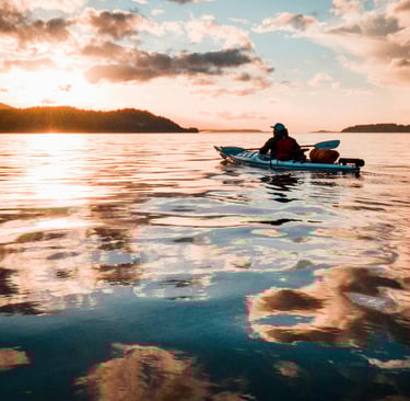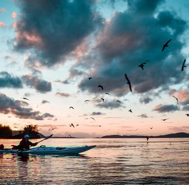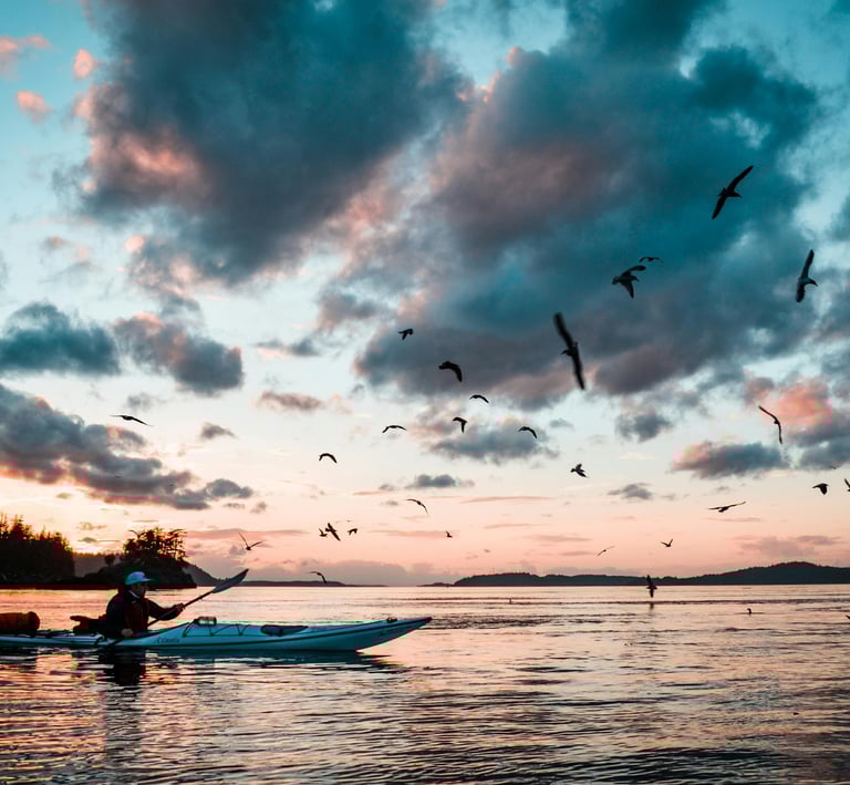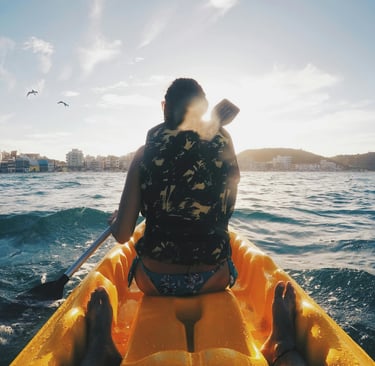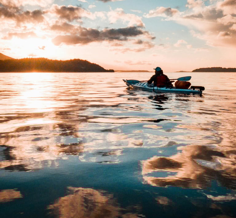 Für die Romantiker unter euch gibt’s eine Sunset-Kajaktour! 🌅 Ihr paddelt in den Abend hinein, während die Sonne langsam im Atlantik versinkt und den Himmel in ein Feuerwerk aus Orange, Rosa und Lila taucht. Klingt kitschig? Ist es auch – aber genau auf die beste Art! 🥰 Stellt euch vor: Ihr treibt gemütlich auf dem Wasser, genießt die Aussicht und vielleicht gibt’s sogar ein Gläschen Wein zum Abschluss. 🍷 Pro-Tipp: Bringt eure bessere Hälfte mit – nach dieser Tour ist Romantik-Level 1000 erreicht! ❤️